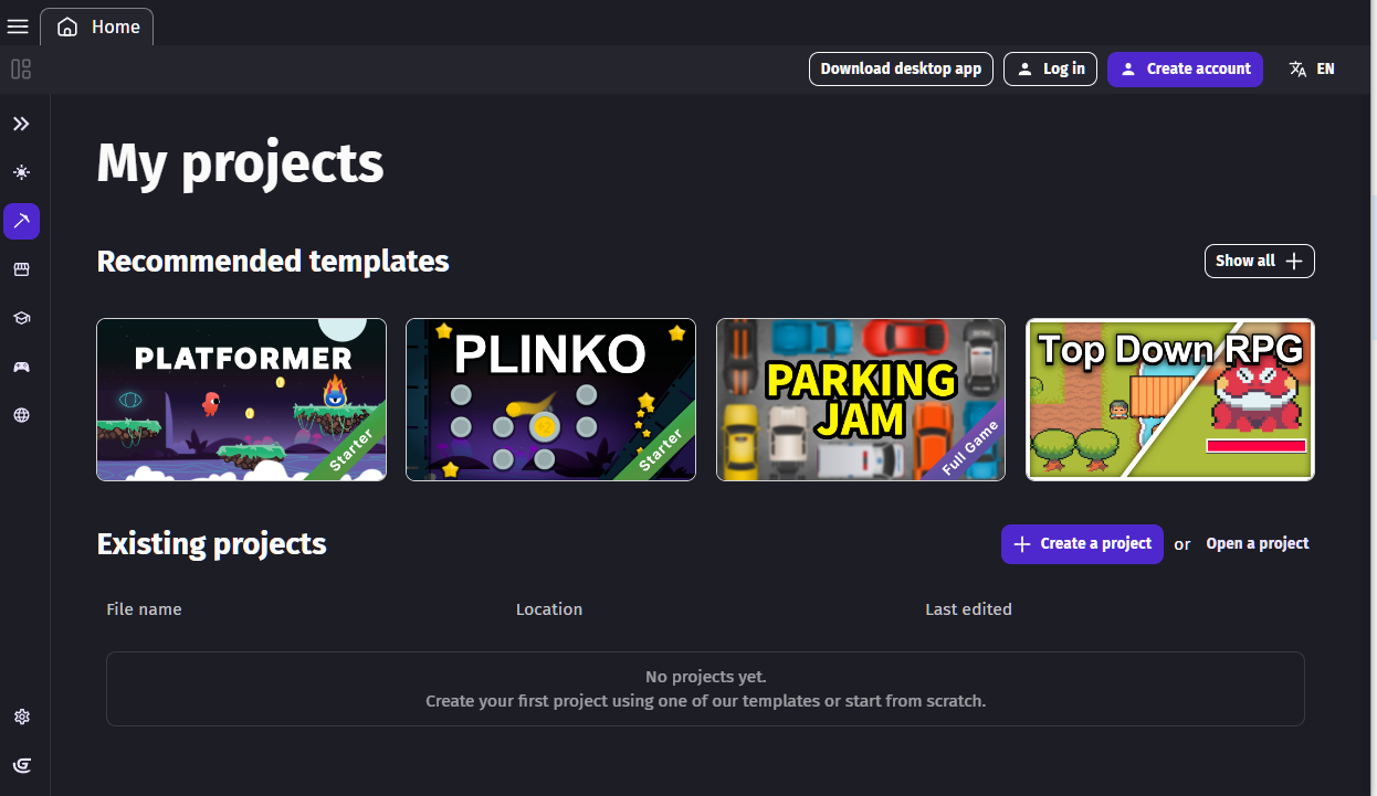 If you don’t have a GDevelop account yet, create one (you just need an email address, a username, and a password).
